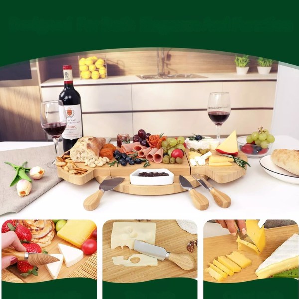 Acest platou nu doar că afișează elegant gustările, dar servește și ca placă de tăiat. Suprafața sa netedă din lemn face ușoară tăierea și servirea tuturor gustărilor preferate într-un singur loc.