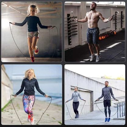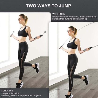 Cu un ecran HD, coarda de sărituri electronică permite personalizarea greutății și a timpului de săritură, urmărind în același timp caloriile arse și numărul de sărituri.