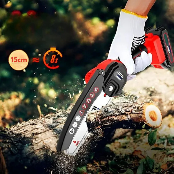 Echipat cu o baterie litiu-ion de 1500 mAh, Fierăstrăul Electric Portabil BRENCHIE oferă până la 100 de tăieri per încărcare, asigurând sesiuni de lucru neîntrerupte.