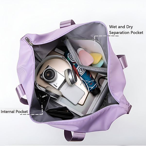 Această geantă are un separator umed și uscat pentru depozitarea comodă a hainelor și prosoapelor murdare sau umede.
