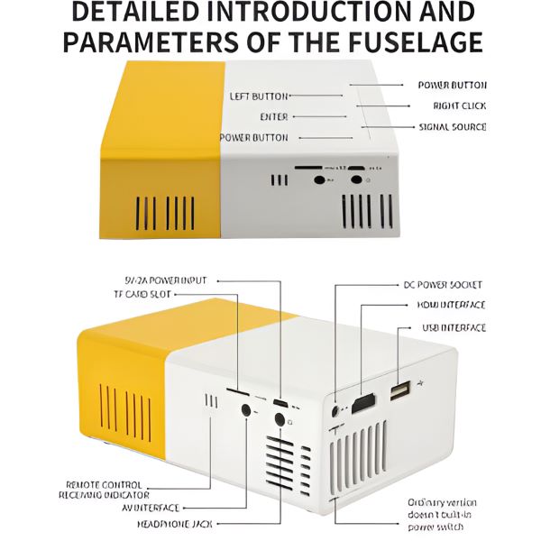 Cu porturi multiple precum USB, HDMI și AV, acest proiector asigură distracția, indiferent de dispozitivul pe care îl utilizați.