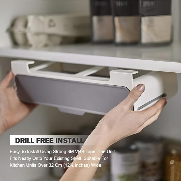 Instalați-o sub rafturi pentru a optimiza sertarele, dulapurile și spațiul general din bucătărie.