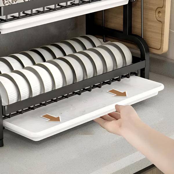 Designul inovator pe mai multe niveluri vă permite să uscați farfurii, pahare, boluri, vase de gătit și ustensile, toate într-o singură unitate compactă.
