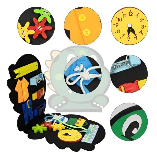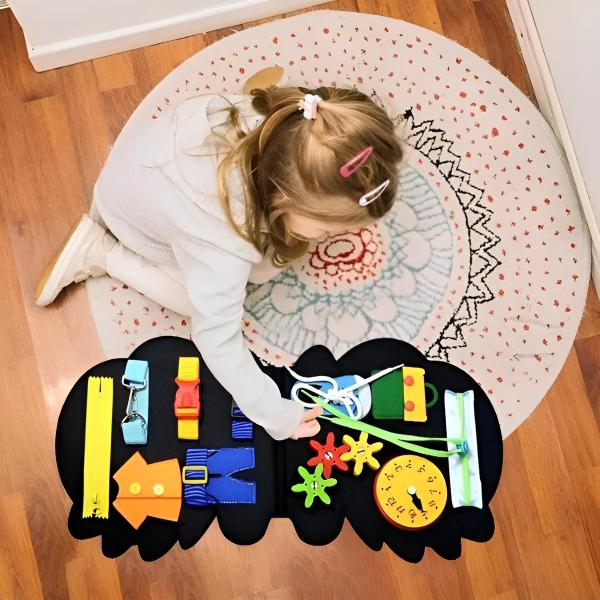 Copilul se va distra cu fermoare, închizători, unelte, ceasuri, șireturi și multe altele